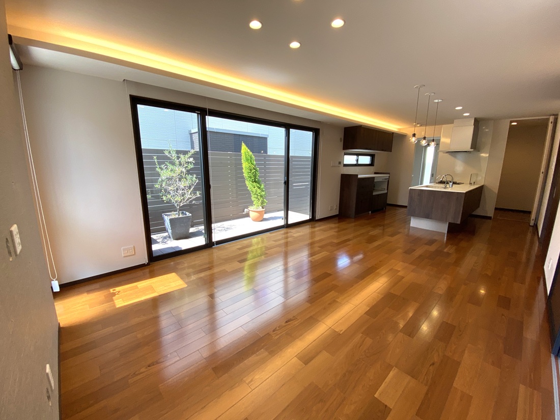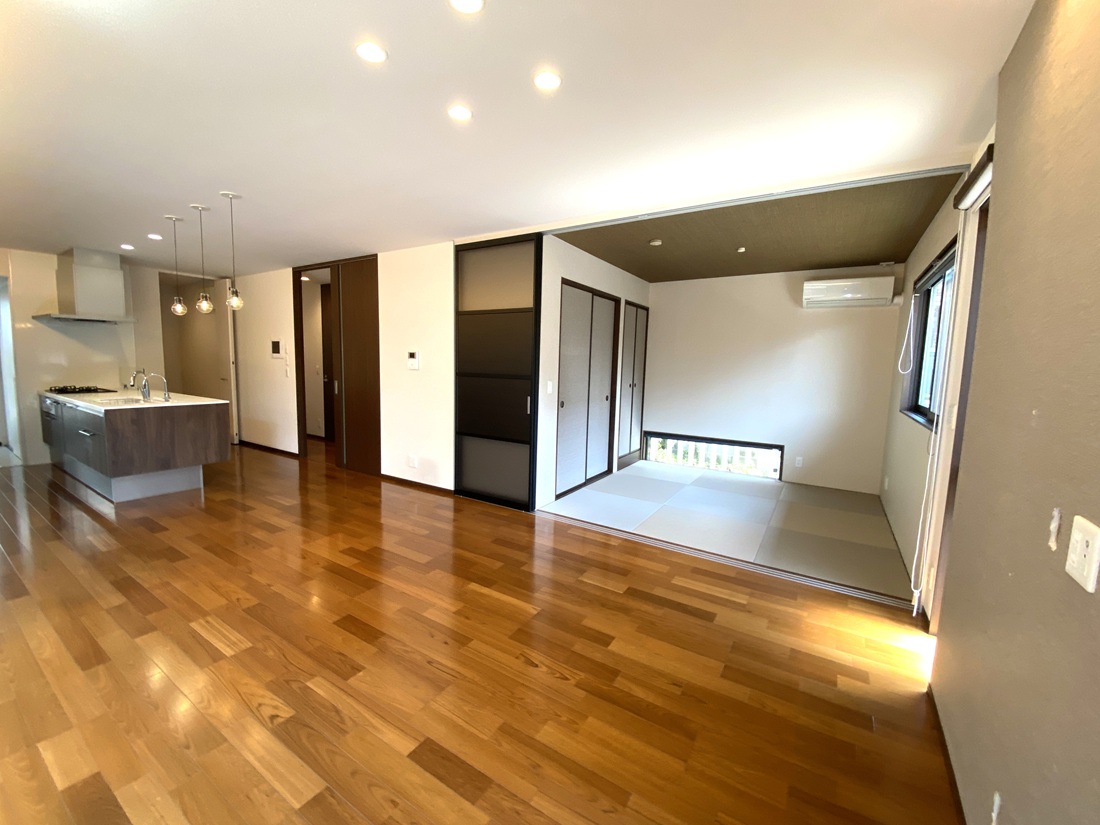暮らしのメインステージであるLDKは約18帖、隣接した和室の扉を開ければ約23帖の空間に。駐車スペースは2台分可能、前面道路は6mあり駐車も楽々。主寝室の洋室8帖は南東向きで日当り良好。また、小中学校へは徒歩5分圏内とお子さまの通学も安心です。